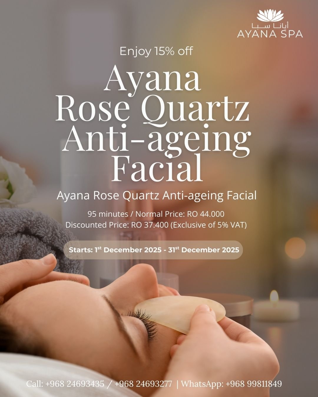 Ayana Spa is Oman’s first organic green spa, inspired by nature, using only premium organic products that are completely safe for the body and the environment. We have carefully selected luxurious treatments from around the world to rejuvenate and beautify your skin and hair, clam your mind and harmonize your soul.