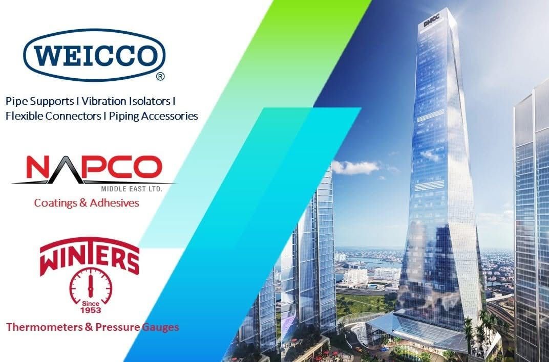 The products include Rheem Air Conditioning Equipment, Clima Uno Air Handling units, S&P Fans, Hattersley Valves, Frese Valves, Weicco Pipe Supports, Flexible connectors and Vibration Isolators, Mueller Copper Products, Winters Pressure Gauges and Thermometers.