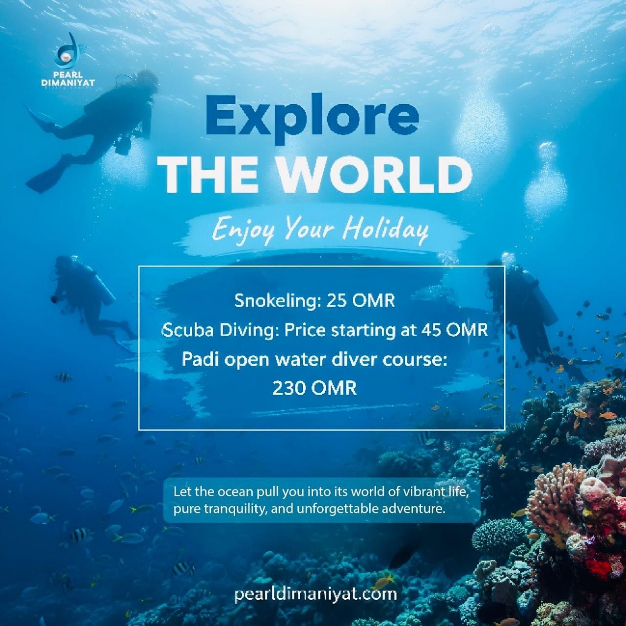 Our mission is to promote this excellent sport to the local and international market. We want to raise awareness of the ocean ecosystem, its coral reefs and its inhabitants. After 10 years of experience in the diving industry, we were finally able to establish Pearl Dimaniyat Diving Centre in the beginning of 2021
