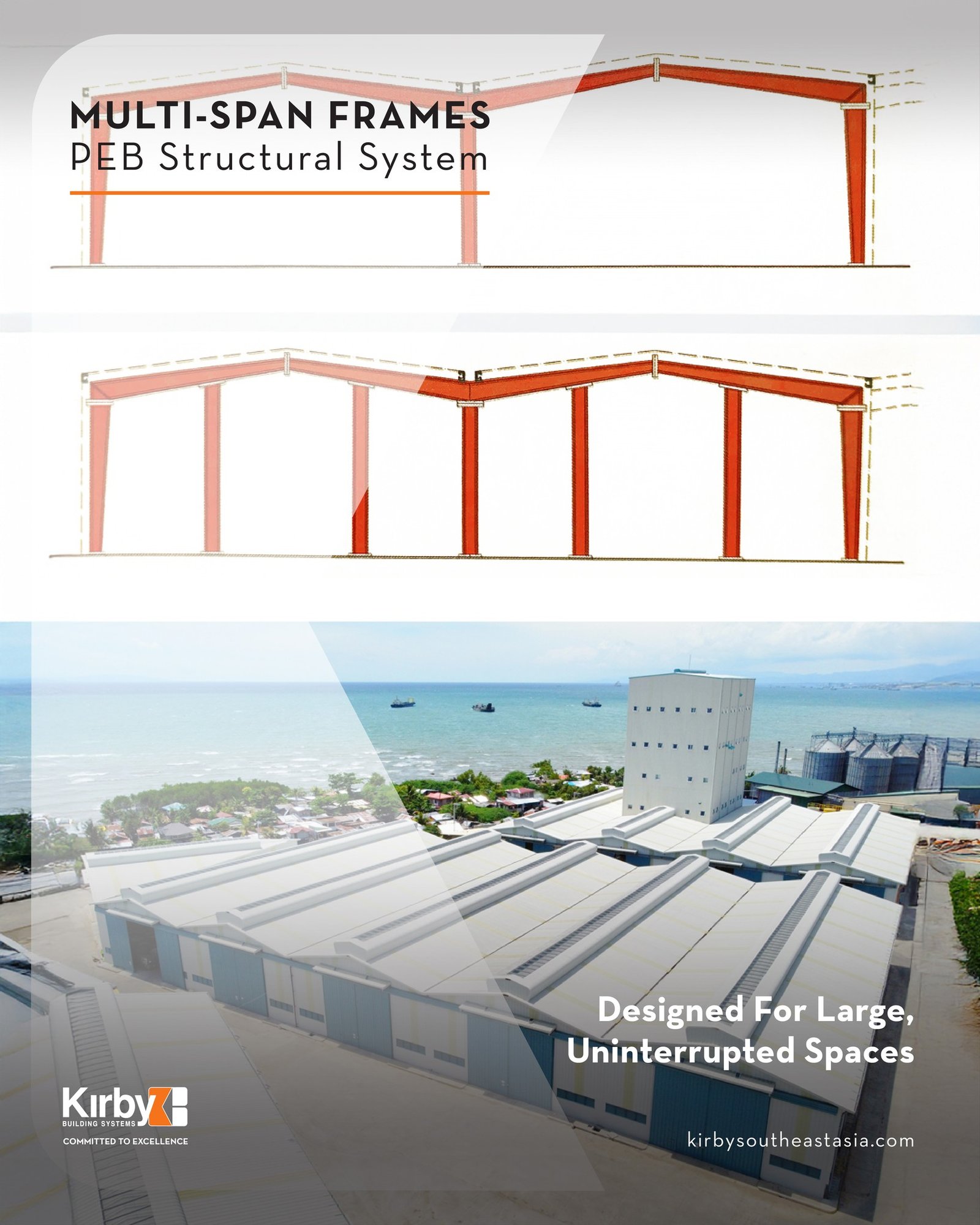 In 1976, Kirby was the first to pioneer PEB technology in the Middle East, moving into India in 1999. Its product list consists of PEB applications for factories, warehouses, metro rails, supermarkets, aircraft hangars, sports stadiums, auditoriums, etc. Other products include Structural Steel, Sandwich Panels, Storage Solutions, Kirby Roof (KR), Kirby Wall (KW), Curved Beams, Kirby Deep Decking Panel and Kirby Standing Seam Panel (KSS-600).